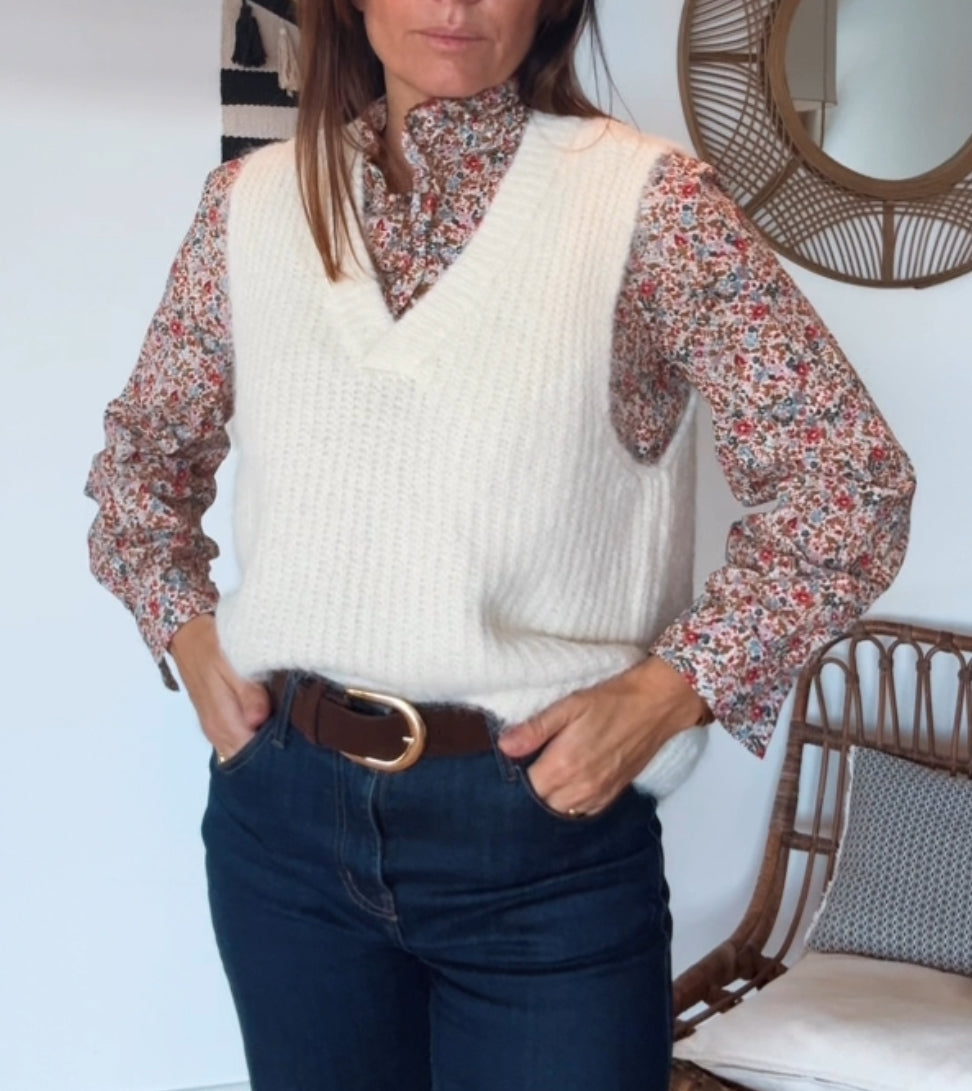 Le pull sans manches Alba est la pièce parfaite pour sublimer vos chemises et blouses favorites.